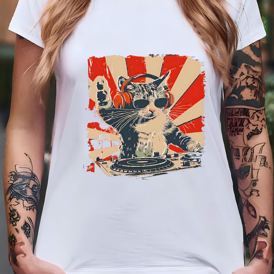 Cool Dj Cat Hoodie, Funny Cat With Headphones Shirt, Stylish Cat Lovers Gift, Dj Cat Kitty Sweatshirt, Cat Graphic Shirt T-shirt