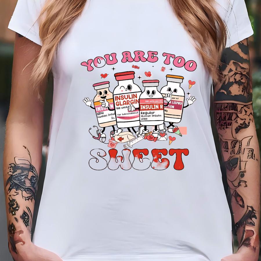 You Are Too Sweet Nurse Valentine Hoodie, Insulin Diabetes Icu Nurse Sweatshirt, Valentine Gift For Nurse, Pharmacist Diabetic Nurse Tee T-shirt