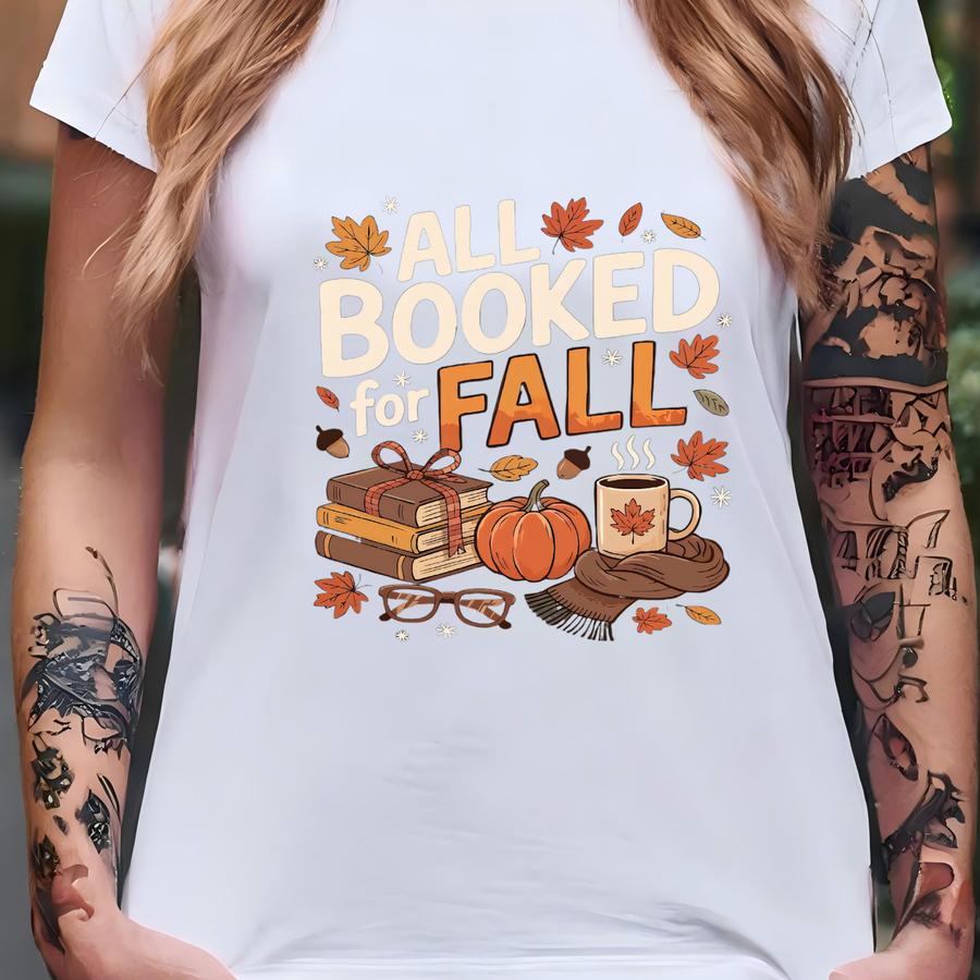 All Booked For Fall Sweatshirt, Cute Book Lover Autumn Tee, Cozy Reading Tshirt For Women, Bookish Fall Graphic Tee, Literary Girl Gift T-shirt