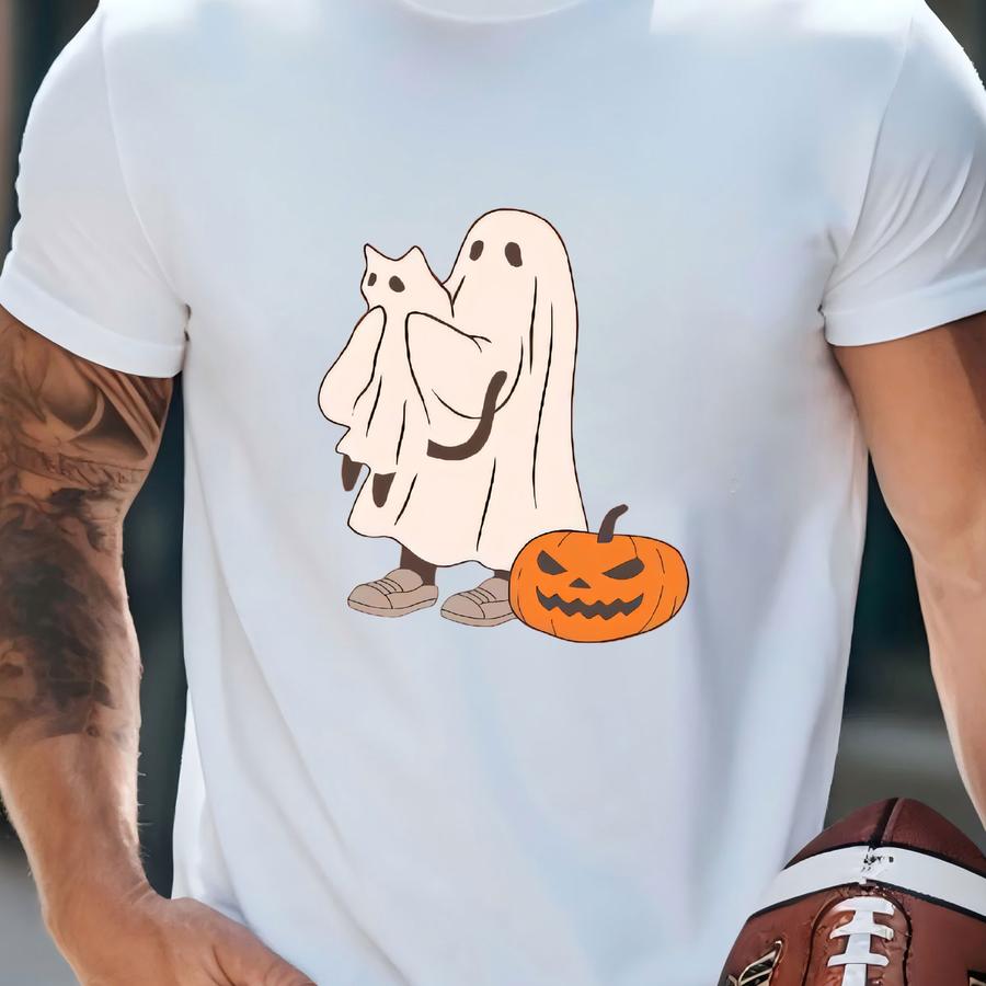 Ghost Cat Shirt, ® Cat Ghost Hoodie, Cute Cat Lovers Shirt, Retro Ghost Halloween, Halloween Cat Hoodie, Spooky Season Gift T-shirt