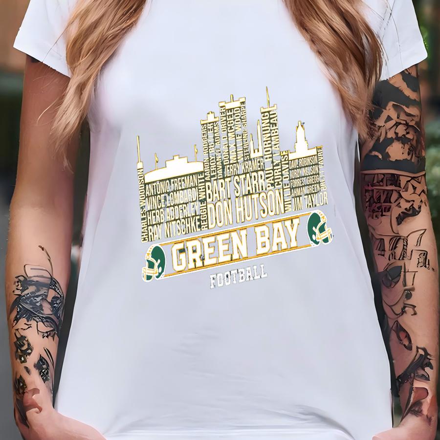 Green Bay Football City Skyline Shirt, Green Bay All Time Legends Hoodie, Vintage 80s Green Bay Game Day Tee, Green And Gold T-shirt