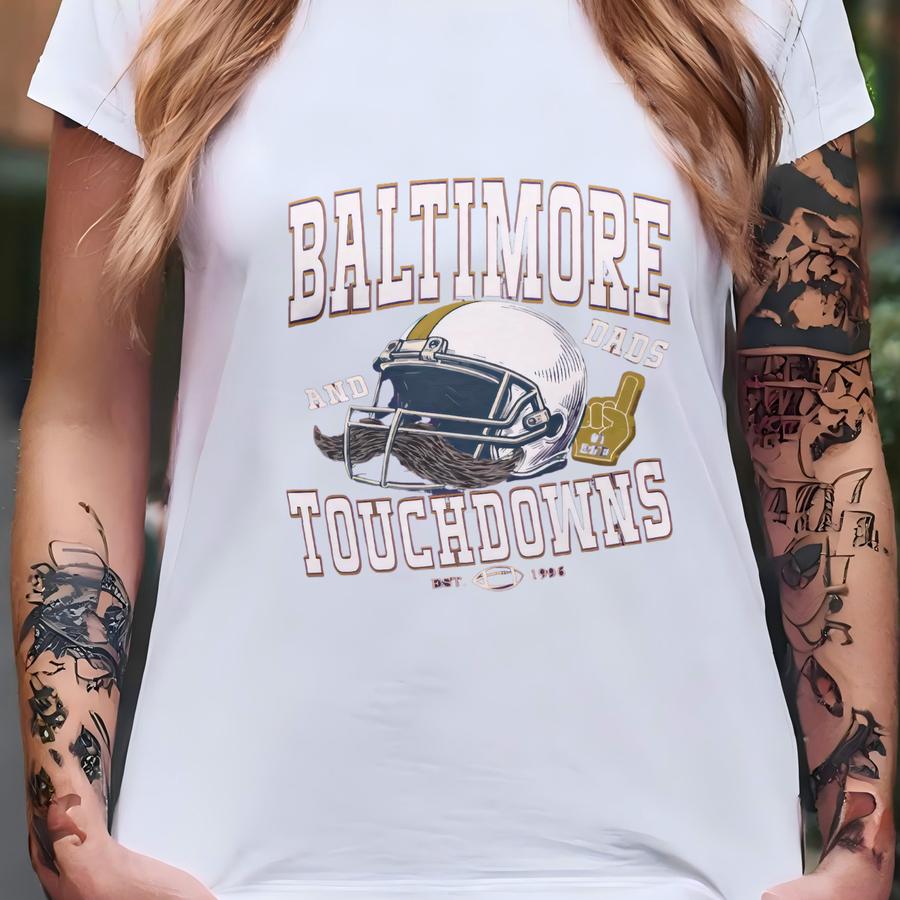 Baltimore Football Dad Shirt, Father's Day Gift For Baltimore Dads, Mustache Helmet Tee, Dads And Touchdowns Tshirt, Vintage Retro 80s Style T-shirt