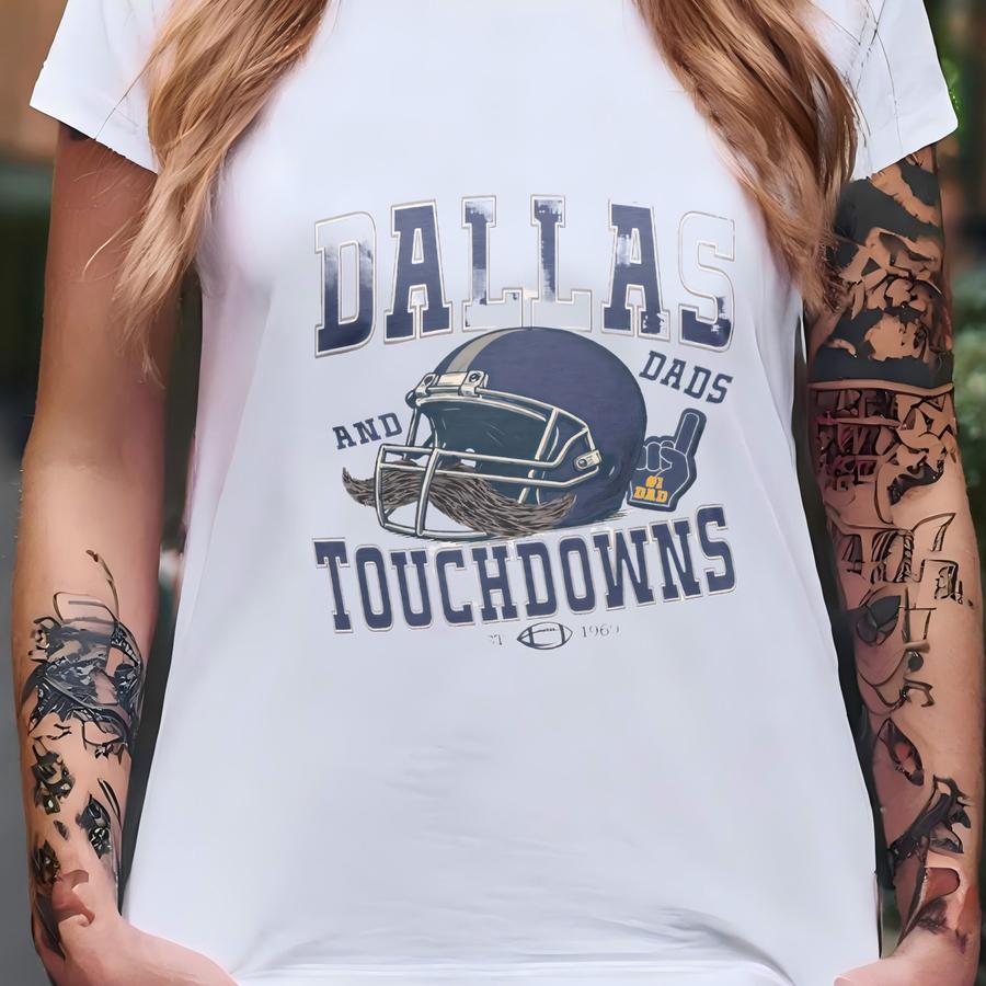 Football Dad Shirt, Father's Day Gift For Dads, Mustache Helmet Tee, Dads And Touchdowns Tshirt, Vintage Retro 80s Style Shirt T-shirt