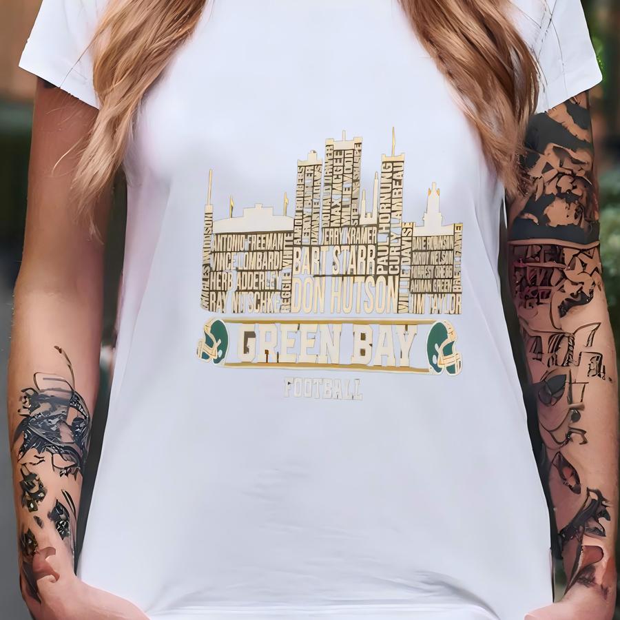 Custom Green Bay Football All Time Legends Hoodie, Retro Green Bay Skyline Sweatshirt, Personalized Green Bay Game Day Hoodie, Vintage Style T-shirt