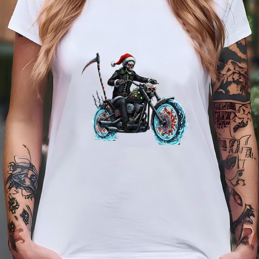 Ride Into Winter Sweatshirt, Gothic Biker Christmas Crewneck, Skeleton Rider Holiday Top Gift T-shirt