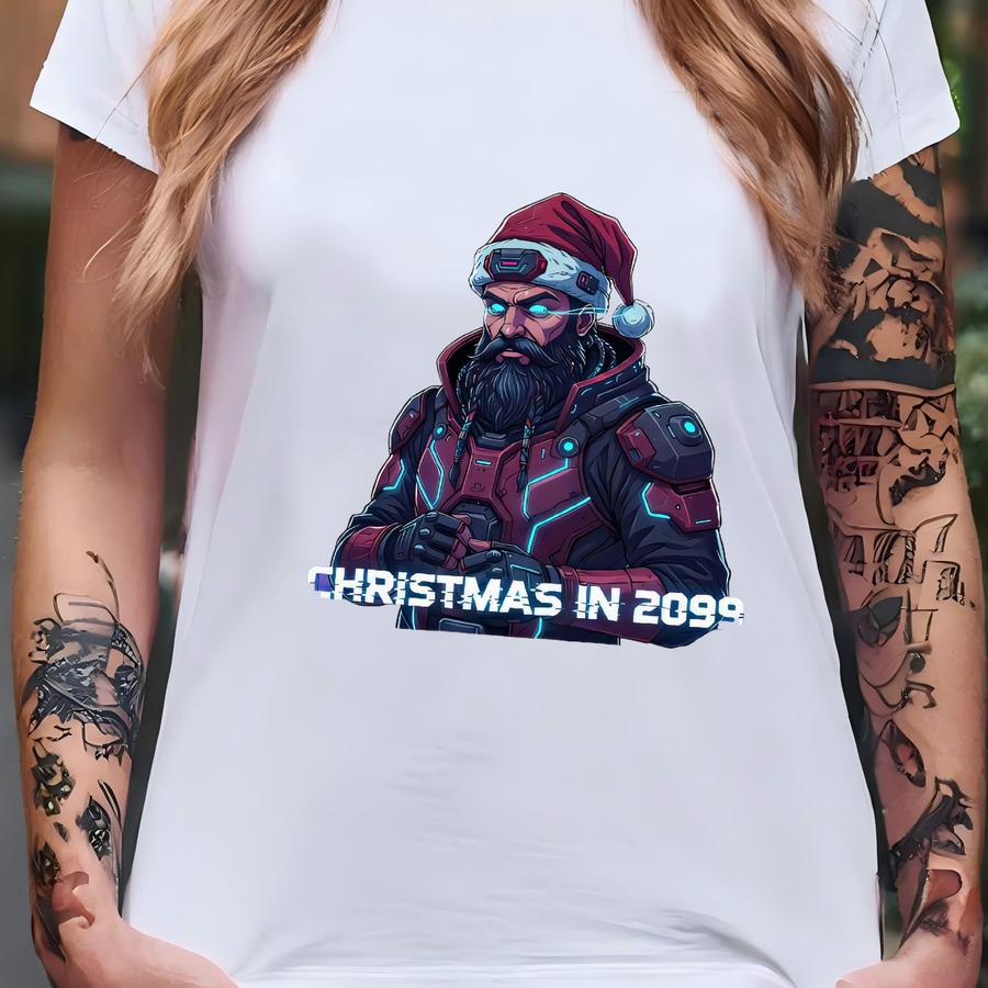 Cyberpunk Santa Hoodie – Christmas In 2099 Sweatshirt, Futuristic Holiday Pullover, Neon Santa Streetwear Gift T-shirt