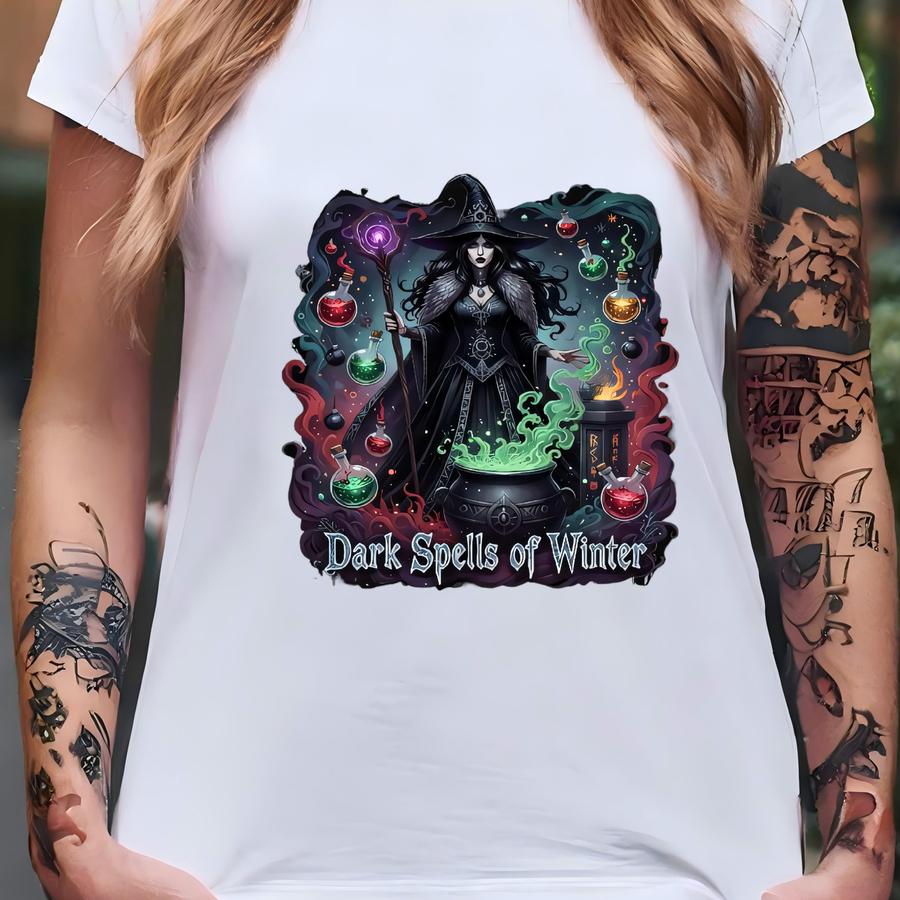 Dark Spells Of Winter Witch Sweatshirt, Gothic Witchcraft Pullover, Winter Magic Cauldron Graphic Gift T-shirt