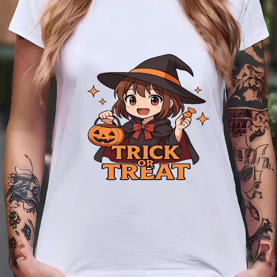 Trick Or Treat Halloween Anime Witch Sweatshirt, Cute Kawaii Pumpkin Pullover, Spooky Season Gift Sweater T-shirt