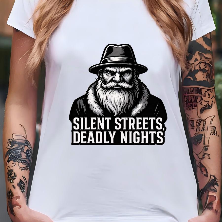 Silent Streets Deadly Nights Sweatshirt, Dark Santa Pullover, Gothic Holiday Crewneck, Noir Christmas Gift Sweater T-shirt