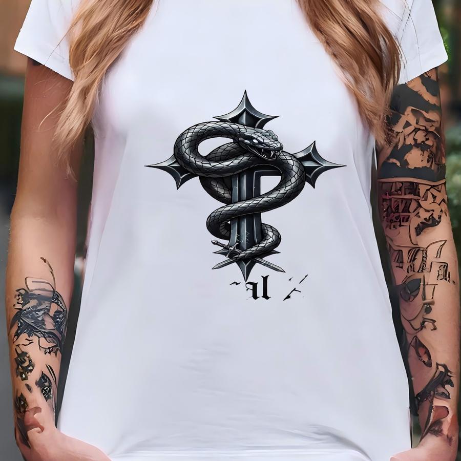Eternal Sin Gothic Sweatshirt, Snake And Cross Pullover, Dark Gothic Streetwear Hoodie, Alternative Metal Gift Top T-shirt