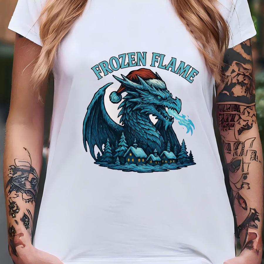 Frozen Flame Dragon Christmas Sweatshirt, Gothic Winter Pullover, Fantasy Holiday Sweater, Dragon Fire Xmas Gift T-shirt
