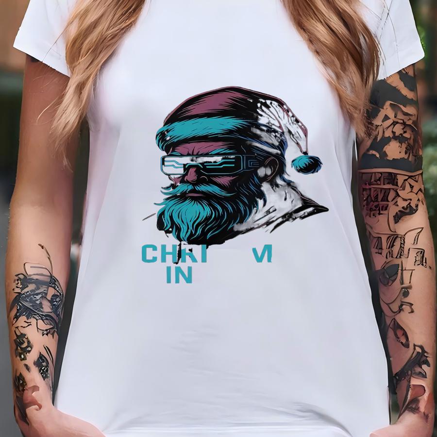 Christmas In 2099 Cyberpunk Sweatshirt, Futuristic Santa Pullover, Neon Holiday Sweater, Sci-fi Xmas Gift T-shirt
