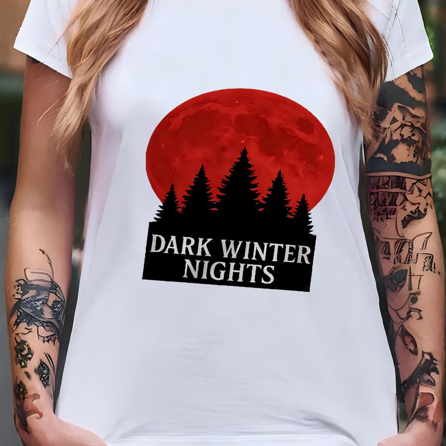 Dark Winter Nights Sweatshirt – Red Moon Gothic Pullover, Spooky Forest Sweater, Dark Aesthetic Winter Gift T-shirt