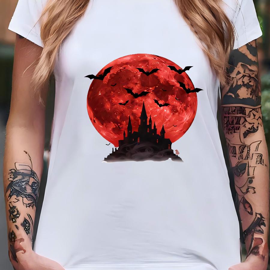 Thirst Of The Night Sweatshirt, Gothic Vampire Castle Blood Moon Pullover, Halloween Horror Unisex Sweater Gift T-shirt