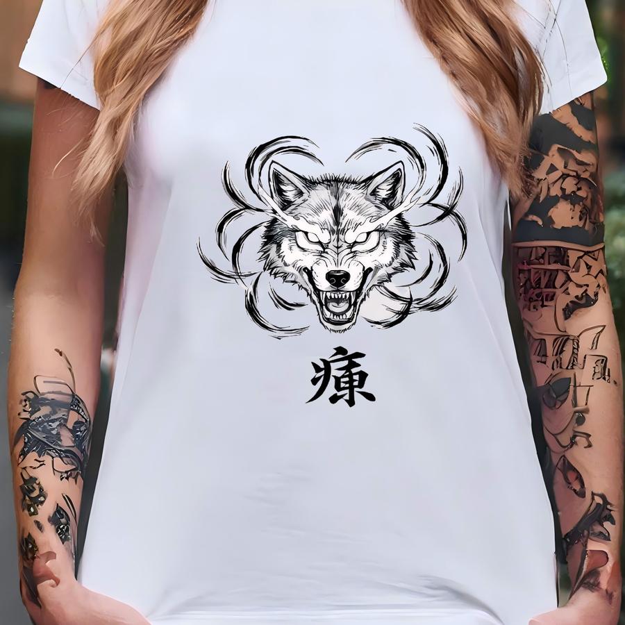 Gothic Wolf Sweatshirt, Japanese Streetwear Sweater, Fierce Wolf Crewneck, Oversized Unisex Pullover, Dark Aesthetic Gift T-shirt