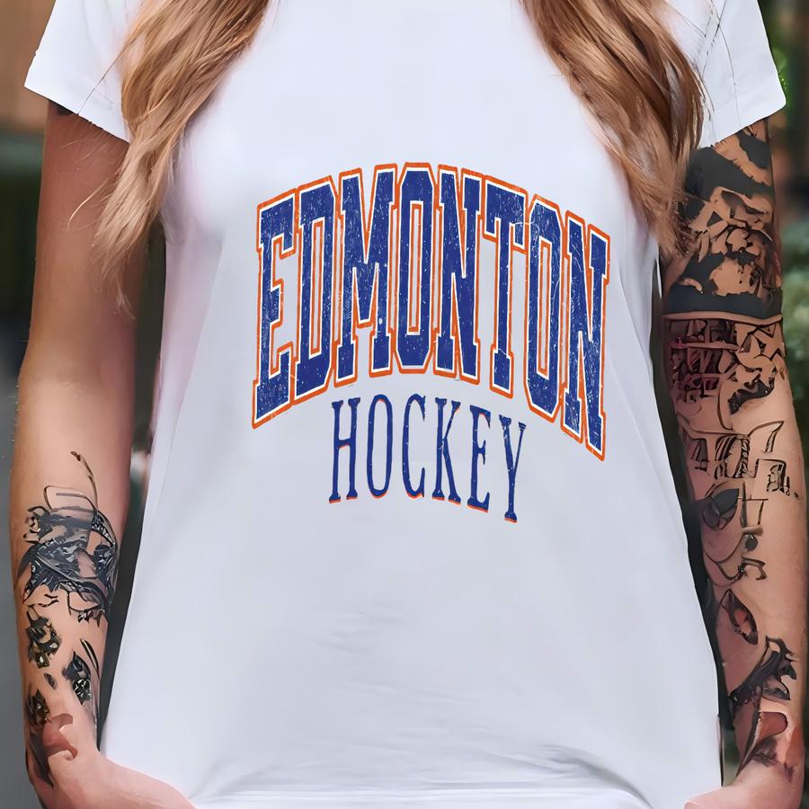 Vintage Style Edmonton Hockey Crewneck Sweatshirt, 2025 Hockey Playoffs, Edmonton Ice Hockey Hoodie, Canada Hockey Fan, Edmonton Shirt T-shirt
