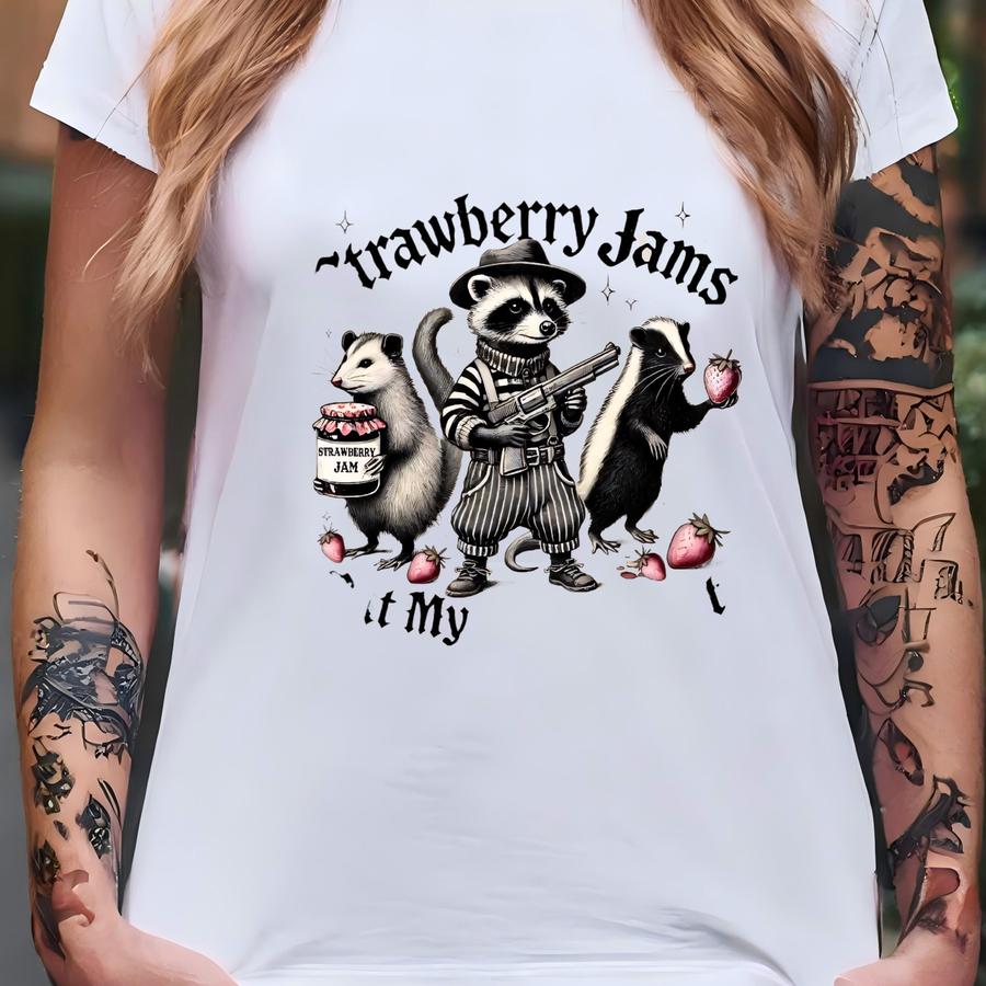 Strawberry Jams But My Glock Don't Raccoon Sweatshirt, Funny Raccoon Shirt, Funny Meme Hoodie, Raccoon Lover Gift Tshirt, Cowboy Raccoon Tee T-shirt