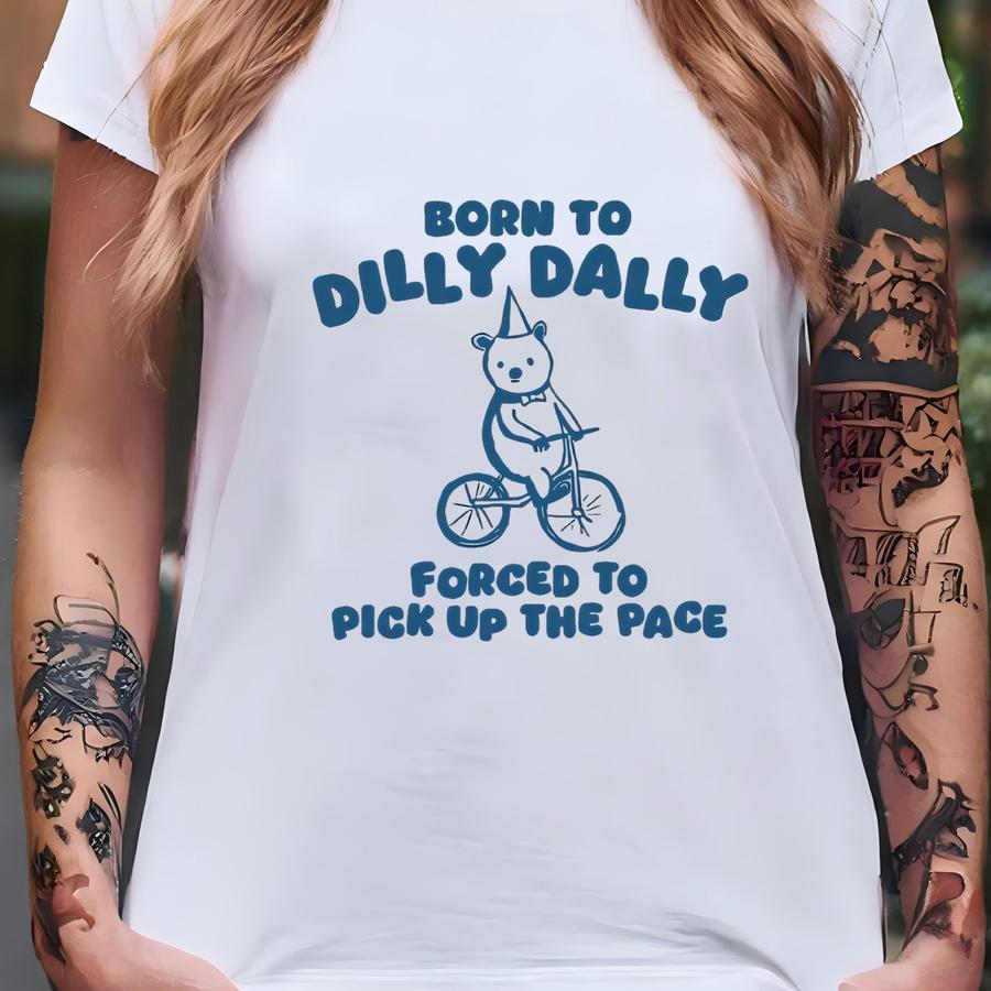 Born To Dilly Dally Forced To Pick Up The Pace Two Sided Shirt, Cute Bear Hoodie, Funny Meme Tshirt, Retro Meme Shirt, Raccoon Sweatshirt T-shirt