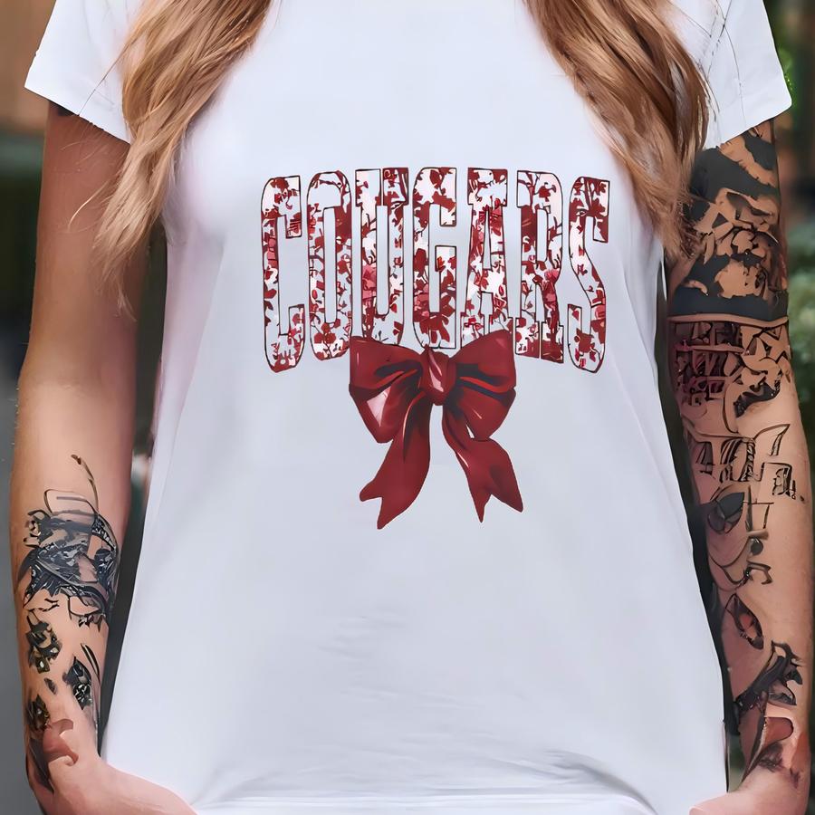 Floral Bow Cougars Crewneck Sweatshirt - Vintage Vibe Floral Sweater For Couples, Gender Neutral Pullover, Spring Fashion Apparel, Cozy T-shirt