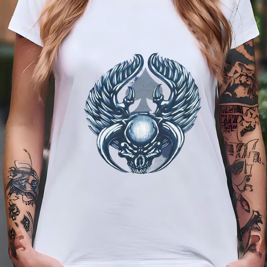 Vintage Y2k Distressed Fade Skull Alien Long Sve Shirt Grunge Streetwear Blue T-shirt