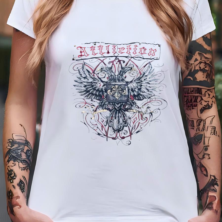 Vintage Y2k Affliction V Neck Aop Shirt Double Eagle Grunge Goth Black Mens 2xl T-shirt