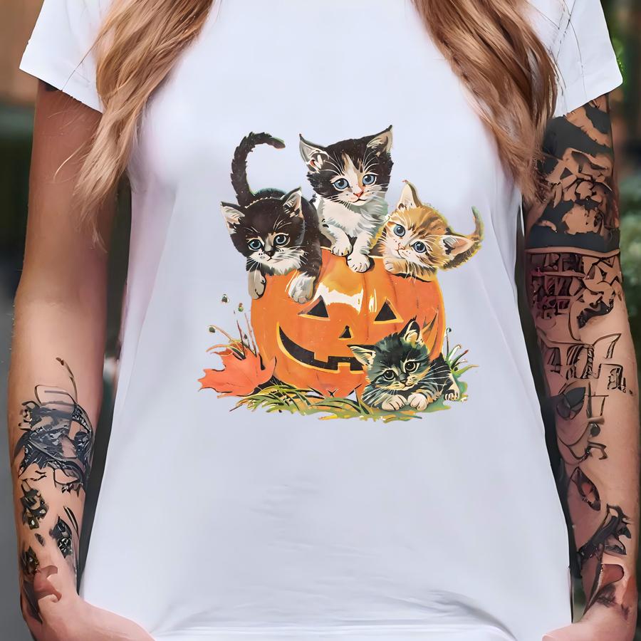 Vintage Cat Shirt Pumpkin Halloween 90s Retro Halloween Spooky Season Tee Pumpkin Cat Lover Black Cat Tshirt Spooky Season Shirt T-shirt