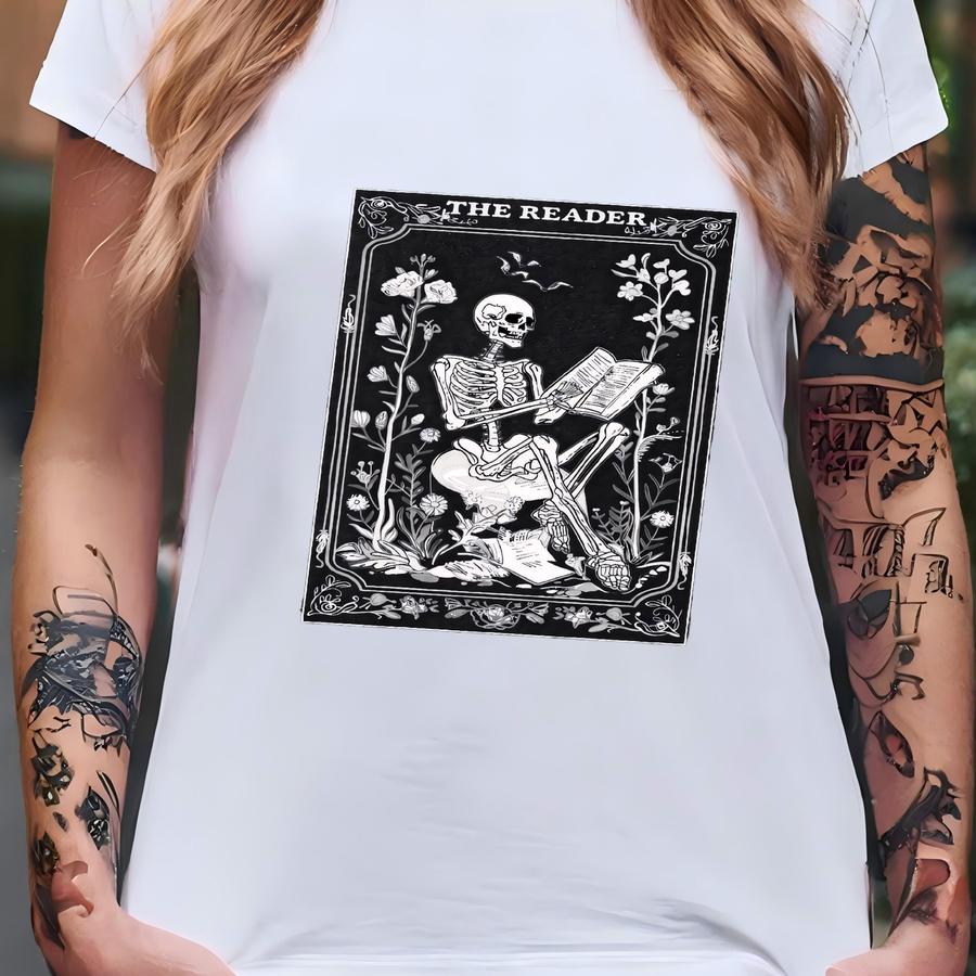The Reader Tarot Card Shirt, , Skeleton Reading Shirt Unisex Tarot Card Shirt, Book Lover Gift, Bookish Gift,tarot Lover Gift T-shirt