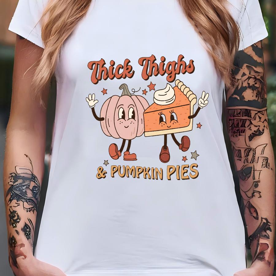 Thick Thighs And Pumpkin Pies Sweatshirt, Funny Fall Pullover, Thanksgiving Sweatshirt, Comfy Fall Sweater, Family Thanksgiving Sweater T-shirt