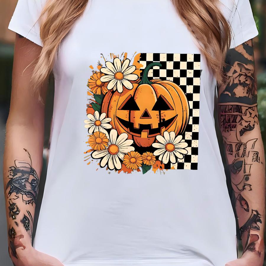 Floral Pumpkin Fall Shirt, Boho Pumpkin Sweatshirt, Pumpkin Halloween Shirt, Checkered Pumpkin Fall Shirt,fall Halloween Shirt, Autumn Shirt T-shirt