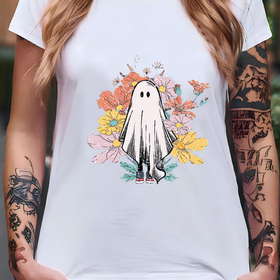 Ghost Flowers Halloween Shirt: Spooky Floral Tee, Pastel Goth Fall Vibes T-shirt