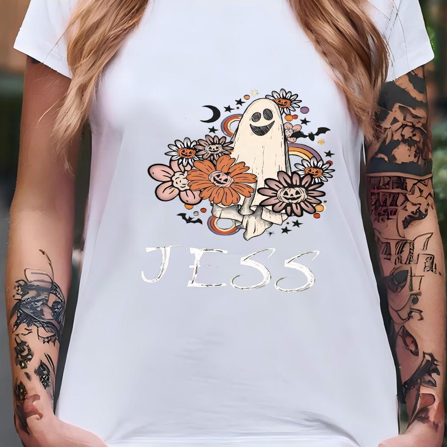 Custom Floral Ghost Sweatshirt: Personalized Halloween Hoodie T-shirt