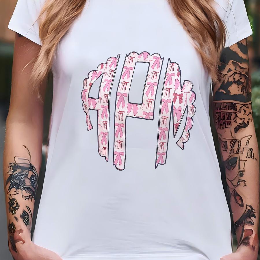Bow Monogram Pink Coquette Hoodie, Girly Initials Sweatshirt, Gildan Crewneck, Apparel, Gildan Hoodie T-shirt