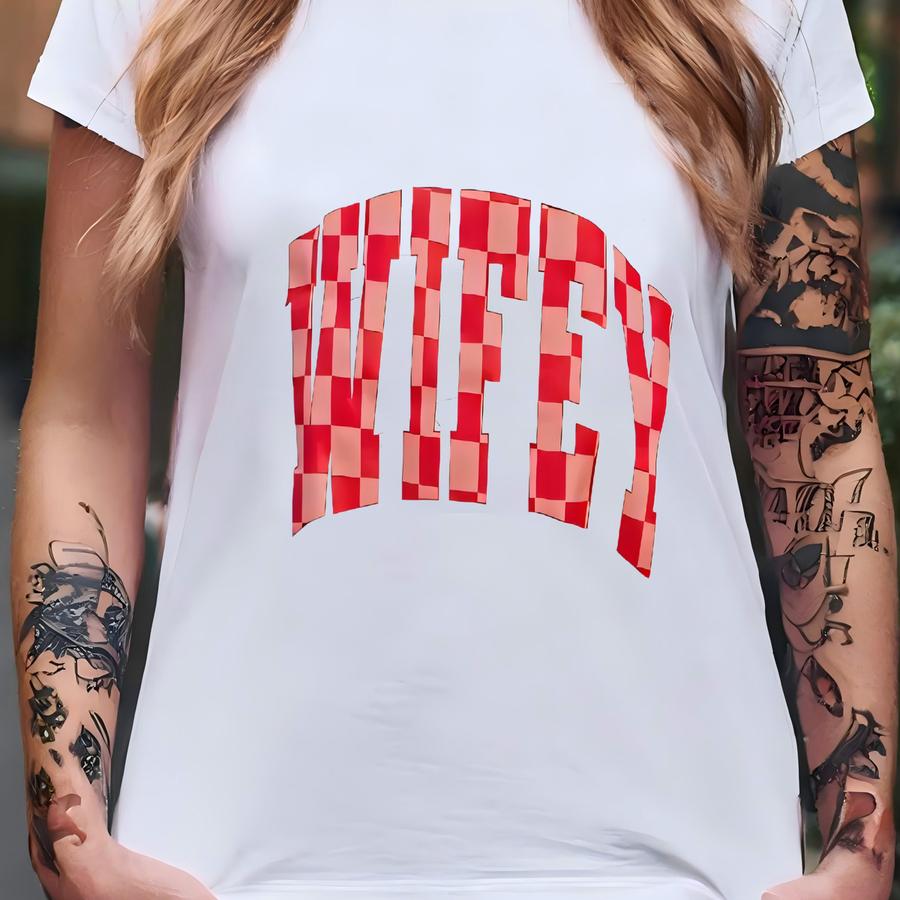 Wifey Pink Gingham Print Hoodie, Cozy Gildan Crewneck, Fall Apparel, Gildan Hoodie, Cc Hoodie T-shirt