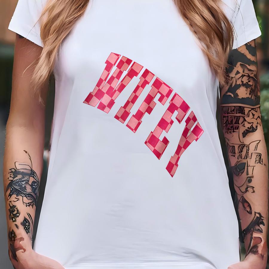 Wifey Pink Gingham Print Hoodie, Cozy Gildan Crewneck, Fall Apparel, Gildan Hoodie, Cc Hoodie T-shirt
