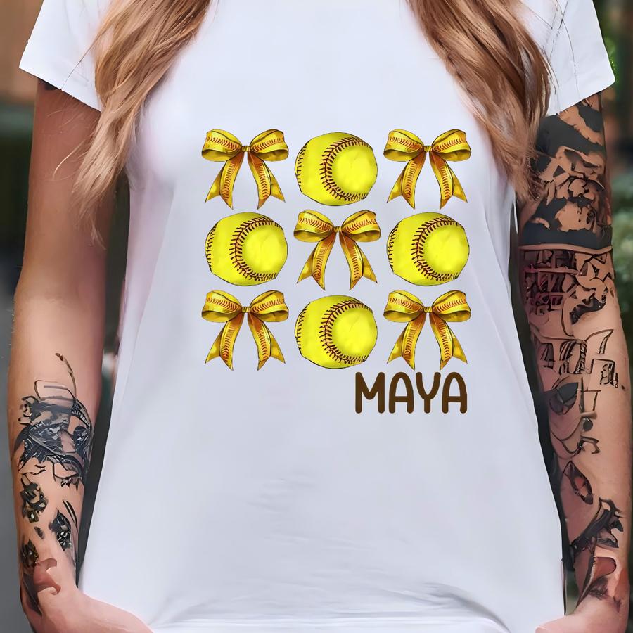 Softball Bow Personalized Kids Shirt | Custom Sports Kids Sweatshirt | Sibling Baby ® T-shirt