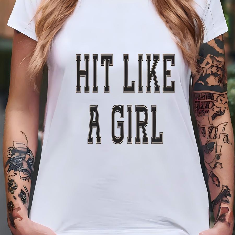 Women's Boxing Sweatshirt, Kickboxing Shirt For Women, Strong Women Gift, Exercise Shirts For Her, Hit Like A Girl Crewneck, Girlfriend Gift T-shirt