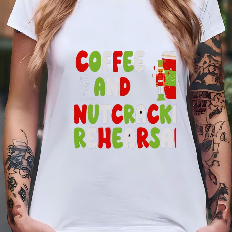 Funny Nutcracker Mom Shirt, Dance Teacher Christmas Crewneck, Coffee And Nutcracker Rehearsals Sweatshirt, Ballet Dancer Coffee Lover Gift T-shirt
