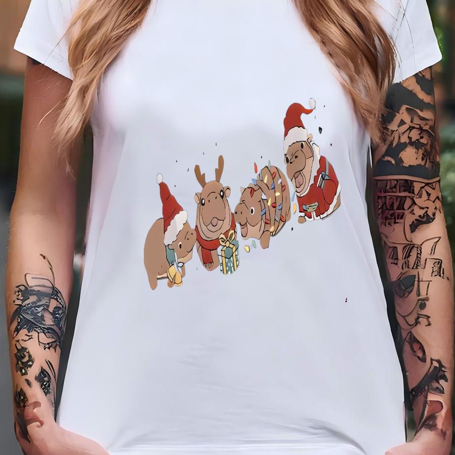 Baby Pygmy Hippo Christmas Sweatshirt, Funny Moo Deng Shirt, Moo Deng Christmas Shirt, Cute Animals Christmas Shirt, Hippo Shirt T-shirt