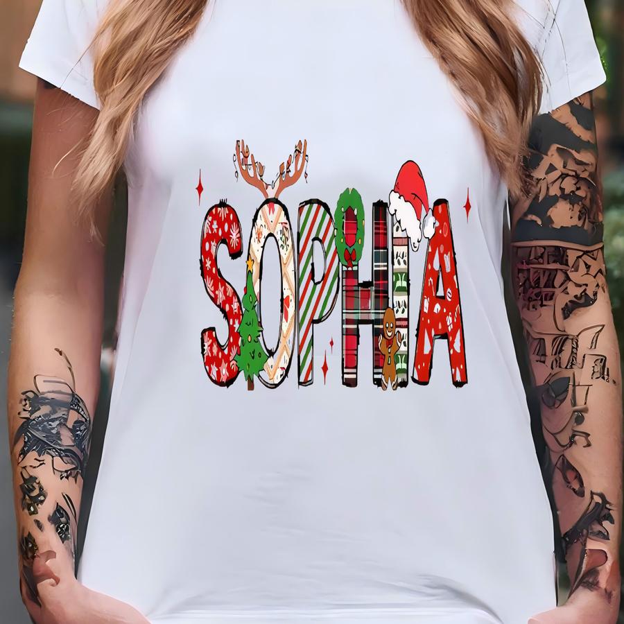 Cute Custom Kid Name Christmas Shirts, Merry And Bright Hoodies, Funny Christmas Design, Personalized Holiday Outfit, Custom Name Tee T-shirt