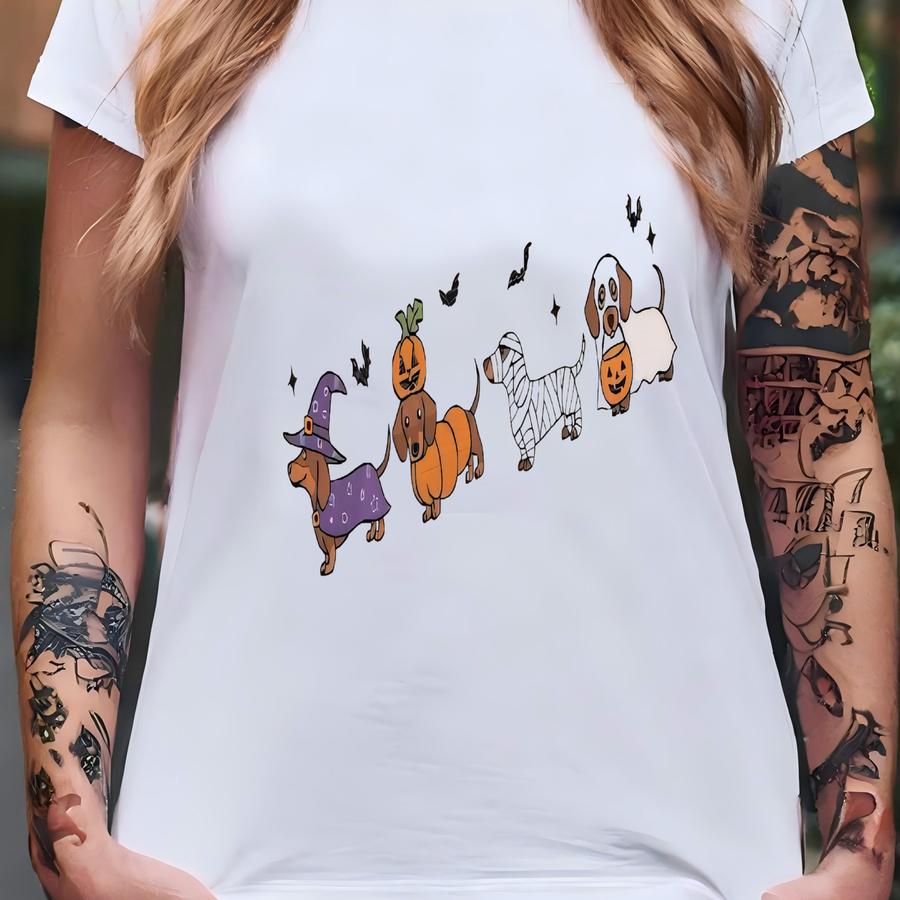 Dachshund Sweatshirt, Fall Outfit, Fall Hoodie, Cozy Halloween Dachshund Design, Cute Dog Gift, Cute Ghost Dogs Halloween Shirt T-shirt