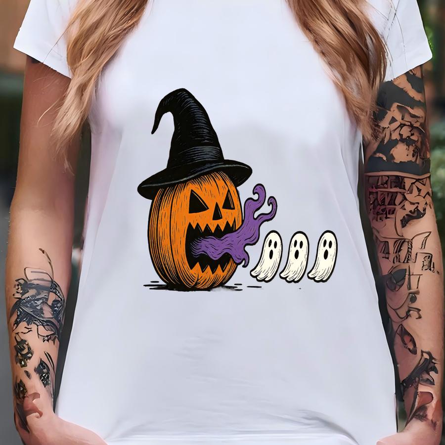 Funny Halloween Ghost Pumpkin Cotton Shirt: Spooky Season T-shirt