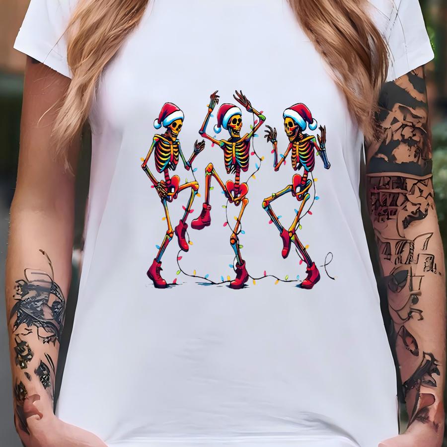 Christmas Dancing Skeleton Tshirt,skeleton Christmas Shirt,christmas Crewneck,holiday Tees,christmas Lights Shirt T-shirt