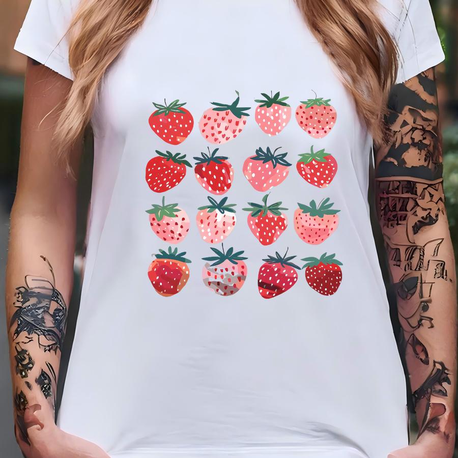 Cute Strawberry Tshirt | Summer Strawberry Shirt, Cottagecore Berries Tshirt, Strawberry Aesthetic, Botanical Garden Tshirt T-shirt