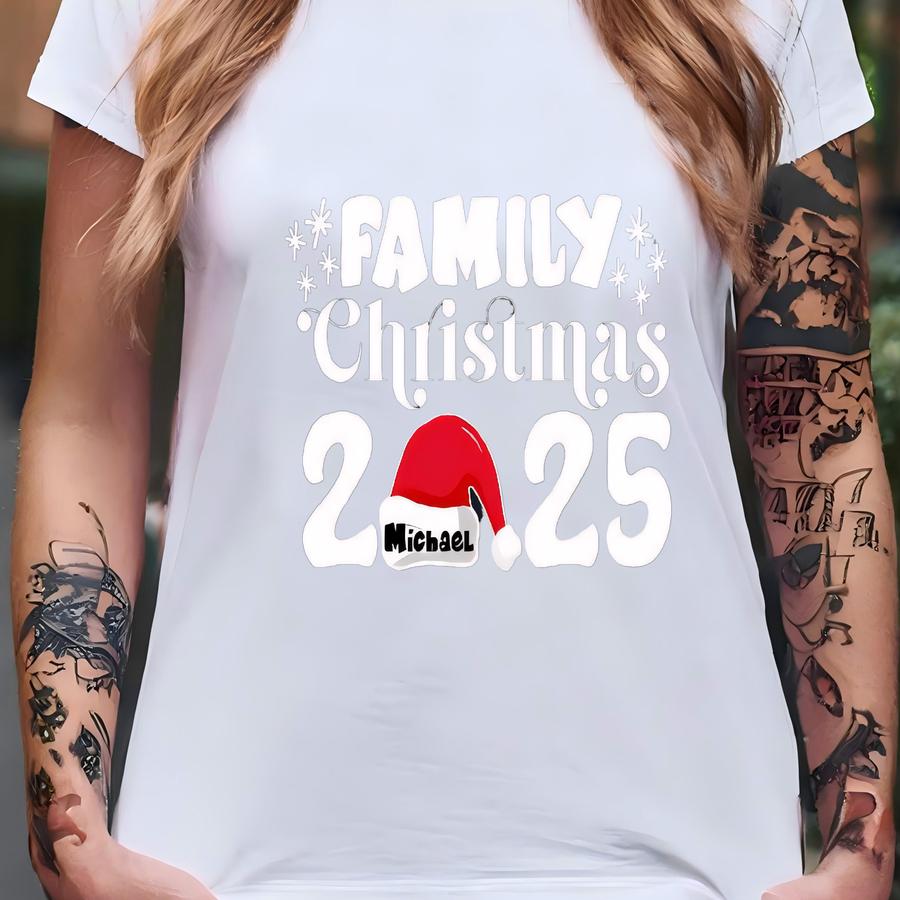 Custom Name 2025 Family Christmas Shirt, Christmas Family Matching Hoodie, Family Xmas Tee, Christmas Family Pajamas, Christmas Crew Shirt T-shirt