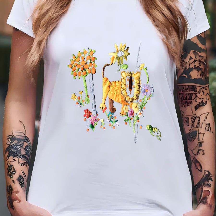 Vtg 70s Black Label Blue Selvedge Denim Lion Flowers Trucker Jean Jacket Hippie Boho Usa 36 T-shirt