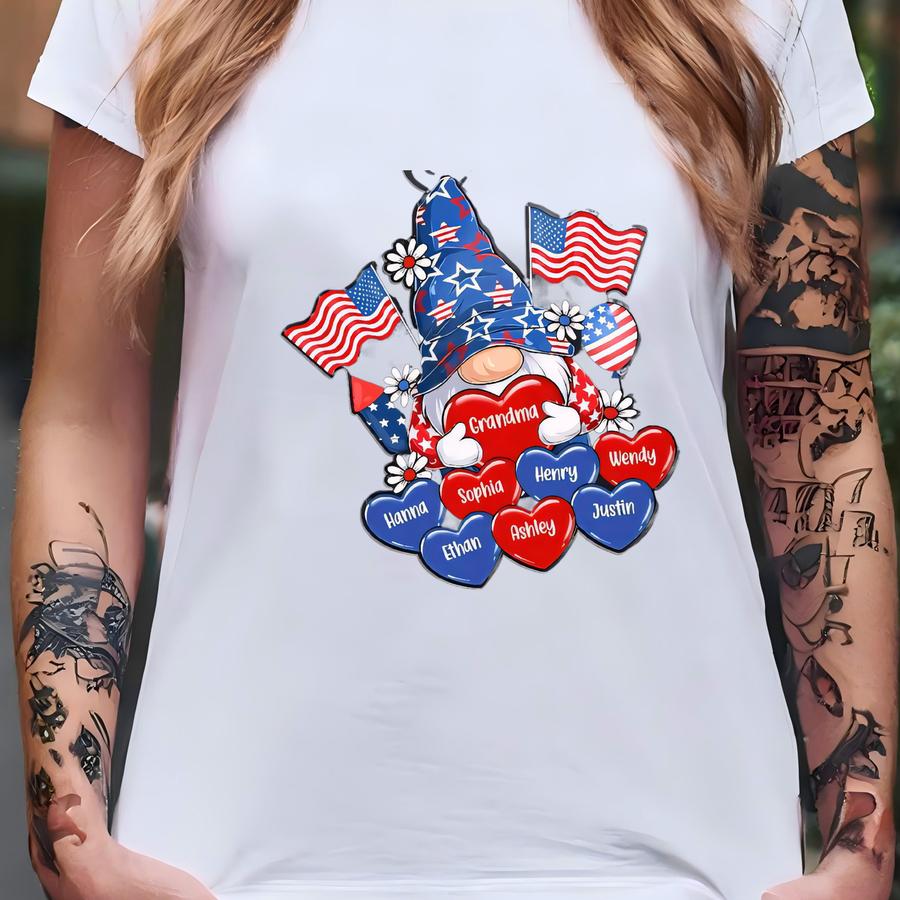 American Gnome Grandma Mom Heart - Personalized Acrylic Keychain - 4th Of July Gift For Mom Grandma, Patriotic Independence Day Keepsake T-shirt