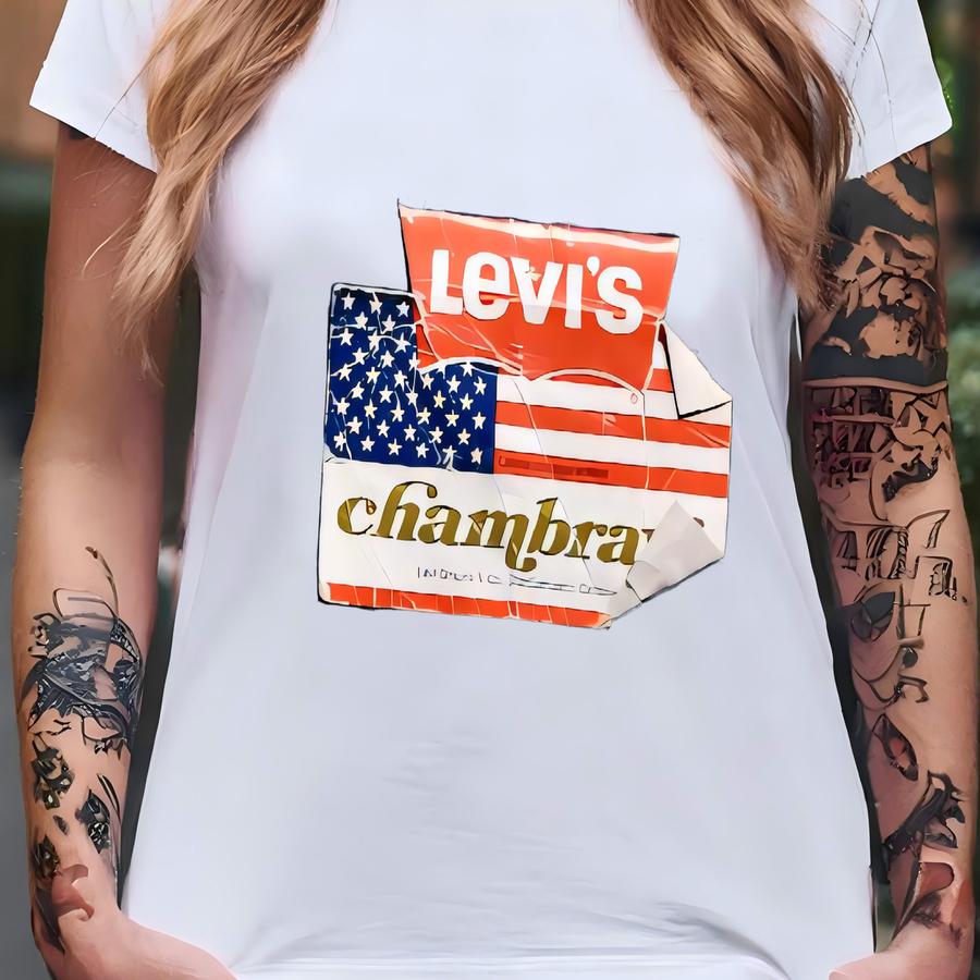 Vtg 70s Levi's 609 Big E Blue Chambray Flared Jeans Pants Deadstock Nwt W27 L31 T-shirt