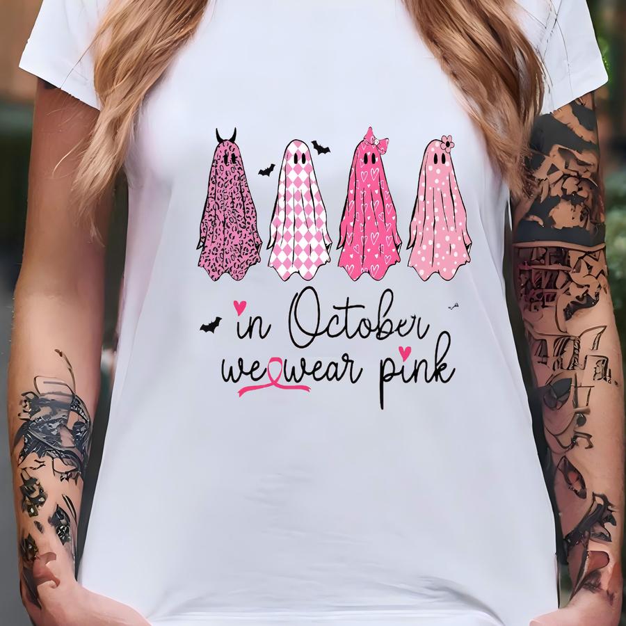 Breast Cancer Support Shirt, Breast Cancer Shirt, In October We Wear Pink Ghosts, Breast Cancer Awareness Gift,warrior Pink Ribbon Tee T-shirt