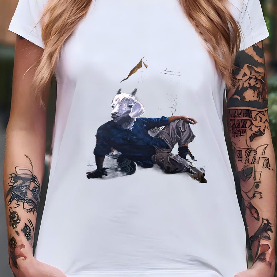 Rock Climbing Goat Man Painting Gic Print T-shirt