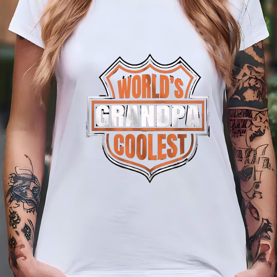 World's Coolest Grandpa Shirt New Grandpa Announcement Tee Motorcycle Grandpa Gift Funny Father's Day Christmas Gift For Cool Grandpa T-shirt